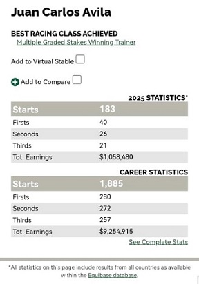 purasangres, y está encaminado a su tercera estadística consecutiva en La