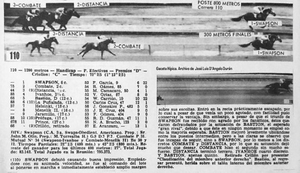 La otra victoria la obtuvo el 18 de julio de 1965 con la monta de Mario Valencia superando a