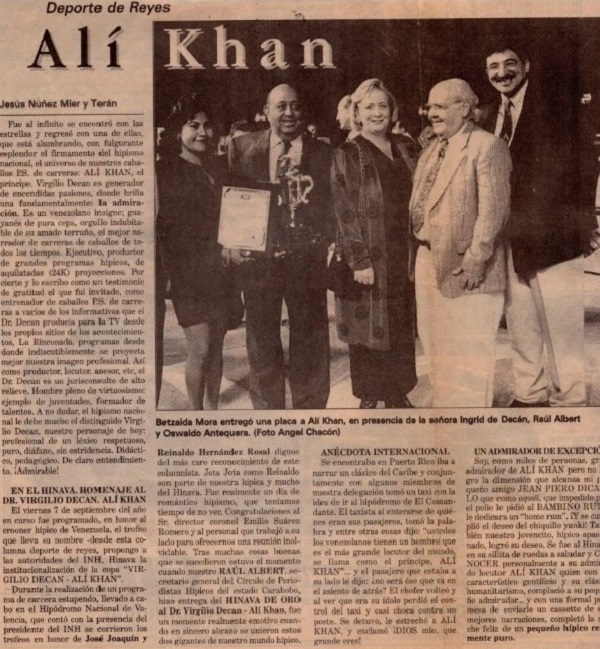 Monitor Hípico los jueves con Aly Khan, en la Rinconada pocas veces hasta que apareció