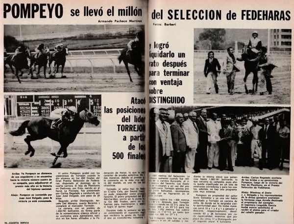 Comparación. Los jinetes de Pompeyo en el año 1977 fueron Rafael Teodoro Chávez (8 veces), Ricardo Ferrer y Freddy Mora (dos veces cada