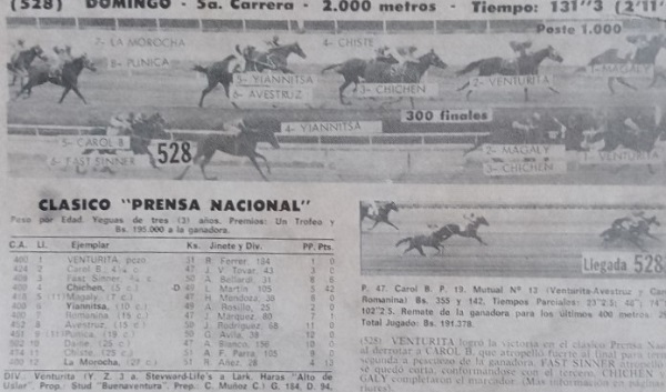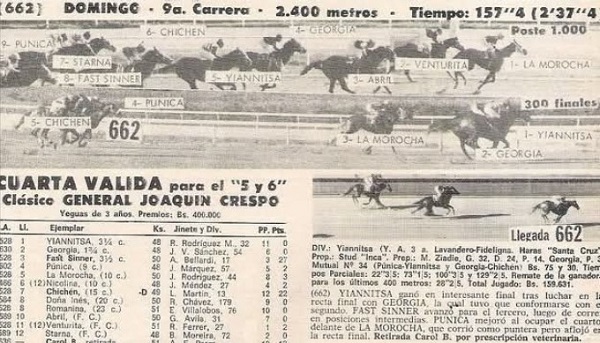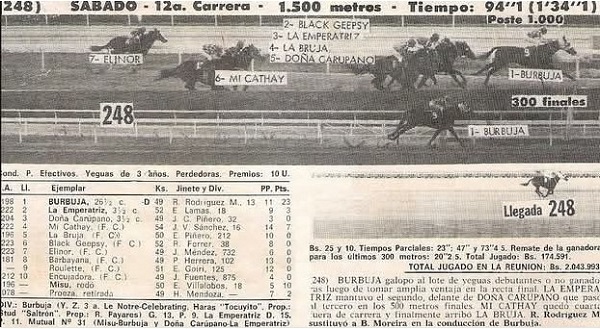 Bs. 458.840 en premios, cabe mencionar que su última victoria la obtuvo
